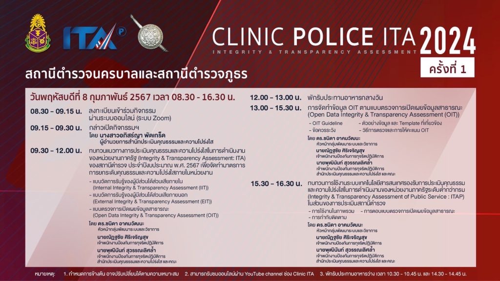 ร่วมฟังบรรยาย แนวทางการประเมินคุณธรรมและความโปร่งใสในการดำเนินงานของหน่วยงานภาครัฐ(ITA)ของสถานีตำรวจ ประจำปี 2567( Clinic Police ITA 2024)