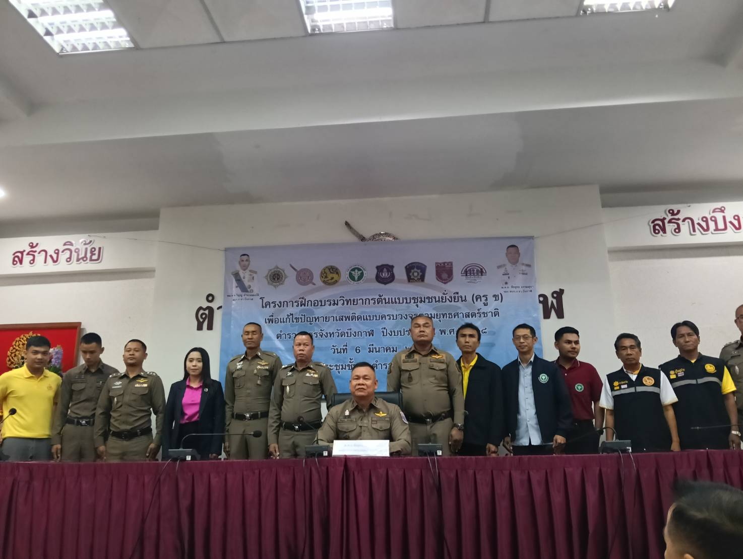 วันนี้(6 มีนาคม 2568) เวลา 09.00น.พ.ต.ท.ปรีชา โยนสิงห์ สว.สภ.ป่งไฮ พร้อมกับข้าราชการตำรวจสภ.ป่งไฮ ผู้แทนกำนัน ผู้แทนฝ่ายปกครอง ผู้แทนฯสาธารณสุข ร่วมอบรมโครงการฝึกอบรมวิทยากรต้นแบบ(ครู ข)นะครับทำประชาคมอีกรอบนึงเพื่อแก้ไขปัญหายาเสพติดแบบครบวงจรตามยุทธศาสตร์ชาติ ตำรวจภูธรจังหวัดบึงกาฬ จริงงบประมาณ 2568 ณห้องประชุมชั้น 3 จังหวัดบึงกาฬ