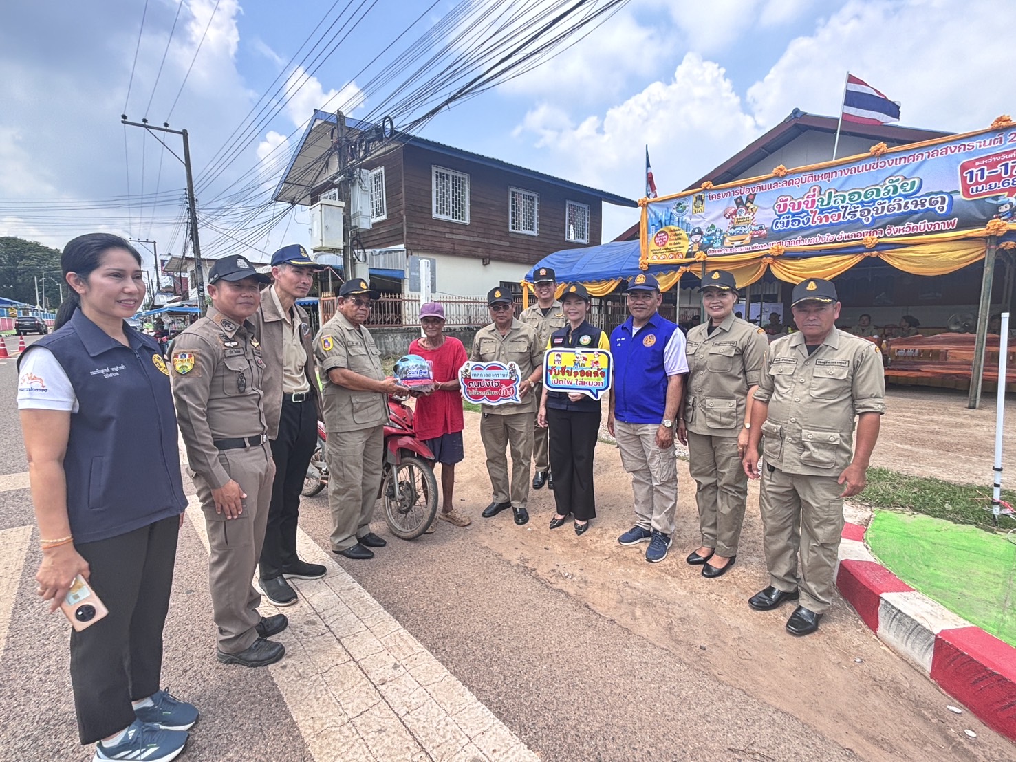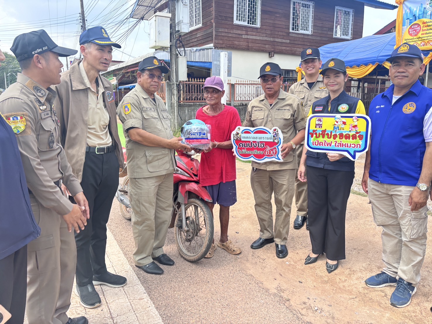 พ.ต.ท.ปรีชา โยนสิงห์ สว.สภ.ป่งไฮ ร่วมกับ อำเภอเซกา ทต.ป่งไฮ ร่วมกันรณรงค์การสวมใส่หมวกนิรภัยในช่วงเทศกาลสงกรานต์ ปี 2568