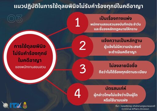 3.แนวปฏิบัติในการใช้ดุลพินิจไม่รับคำร้องทุกข์ในคดีอาญา