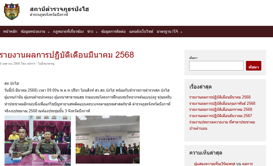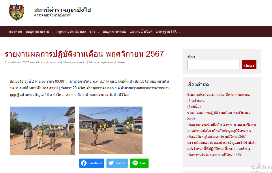 2.ช่องทางการเผยแพร่ผ่านหน้าเว็ปไซต์หลักของสถานีตำรวจ และสื่อสังคมออนไน์